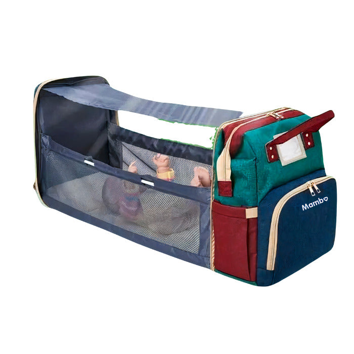 Mambo 2in1 Crib And Diaper Bag Mommy Baby Travel Bed Portable Foldable - Multicolor