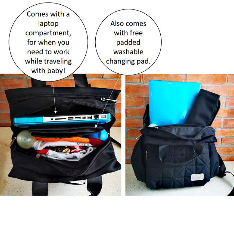 - The built-in laptop compartment is perfect for traveling moms who need to squeeze in some work while traveling with their babies.