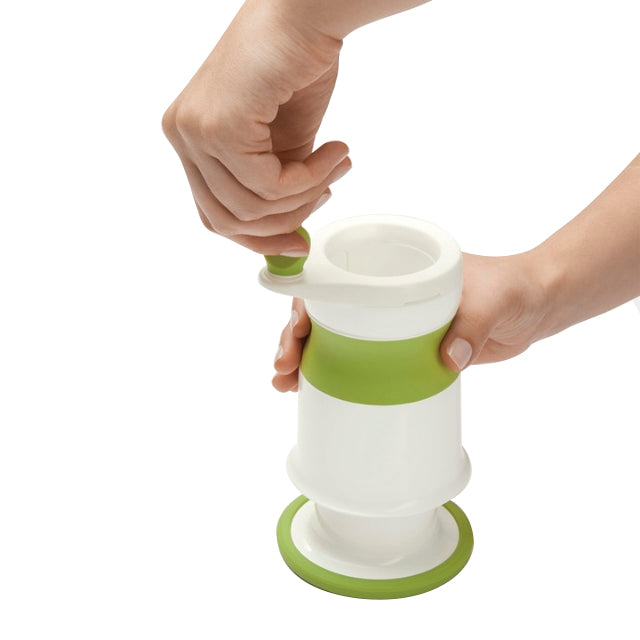 - Conveniently shaped to allow for quick filling and adding liquid to control thickness, the Mash Maker is designed to maximize ease. A non-skid base provides stability while mixing, and also catches excess liquid to minimize messes. The wide mouth lets you scoop and serve pureed food from the top without disassembling the Mash Maker.