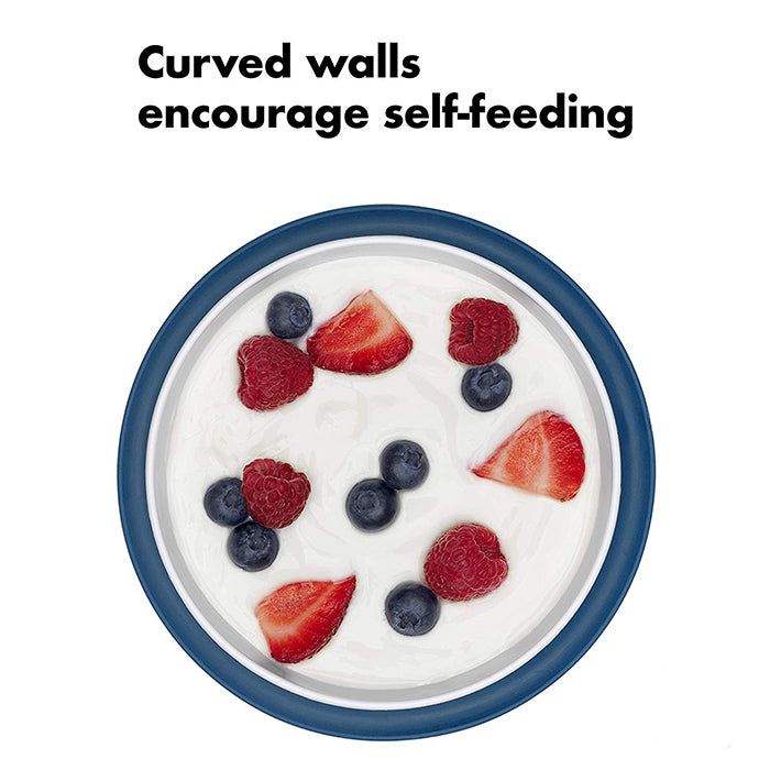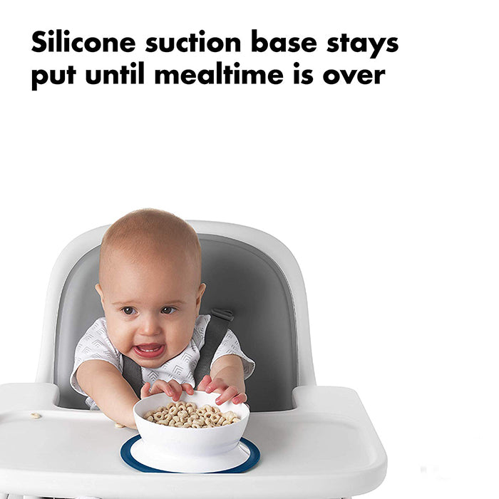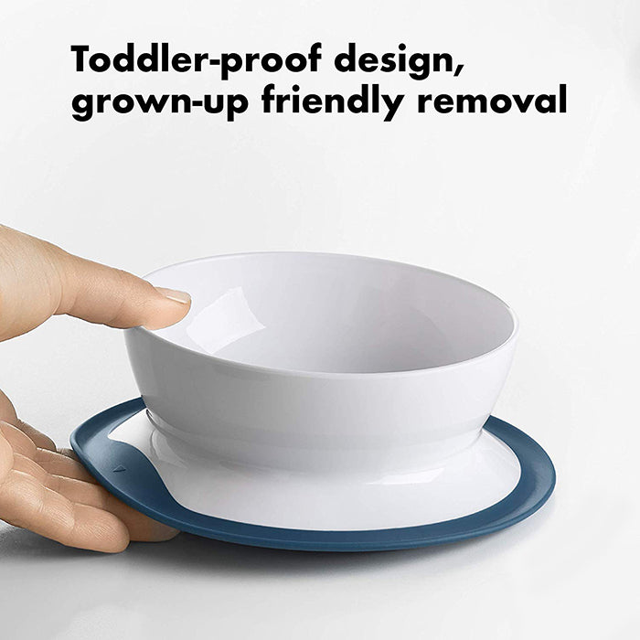 The OXO Tot Stick and Stay Suction Bowl features a secure suction base that sticks firmly to surfaces until mealtime is over. The parent-friendly design makes these plates and bowls easy for grown-ups to remove, but tricky for little ones, to prevent slipping, tipping, or tossing. The side walls are designed to help tots with scooping to help promote self-feeding. These dishwasher-safe bowls and plates quickly twist apart for thorough cleaning.
