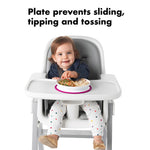 The Stick & Stay Suction line includes a Bowl, Plate, and Divided Plate that feature a secure suction base that sticks firmly to surfaces until mealtime is over. The parent-friendly design makes these plates and bowls easy for grown-ups to remove, but tricky for little ones, to prevent slipping, tipping or tossing. The side walls are designed to help tots with scooping to help promote self-feeding. These dishwasher safe bowls and plates quickly twist apart for thorough cleaning.