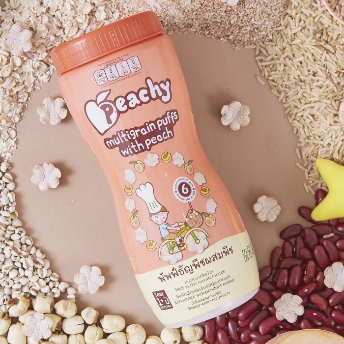 These healthy, puffy snacks are crafted with a blend of six nutritious grains and real peach ingredients, providing a delicious and wholesome option for snacking. The lightly crunchy texture melts quickly in the mouth, making them perfect for little ones and adults alike. Ideal for healthy snacking on the go, these snacks are a tasty and convenient choice anytime!