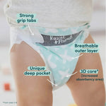 • Featuring our unique 3D core, breathable back sheet, sustainable pulp, and absorption channel.