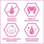 The extra mild emollient formula cleanses gently without drying baby’s tender skin. The herbal extract of chamomile soothes and protects the delicate skin against irritation.
